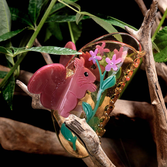 Squirrel with Wild Violet Flower Acetate Women's Hair Claw