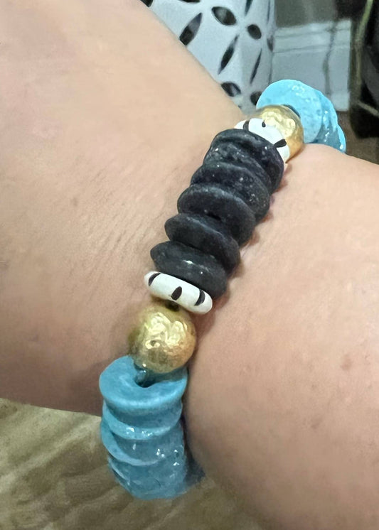 Ashanti Glass & Brass Bead Stretch Bracelet