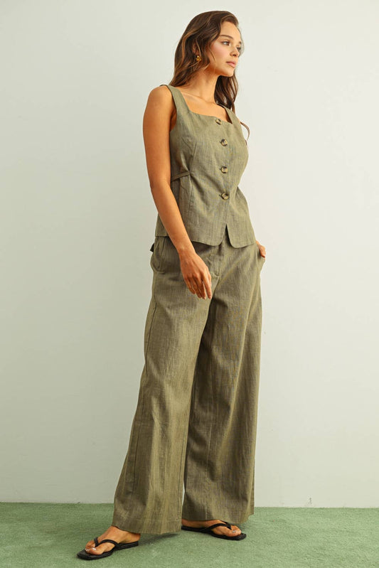 High Rise Utility Wide Leg-Sea Salt