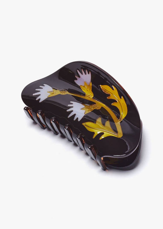 Memento Mori Black Floral Cutout Hair Claw with Black Stones
