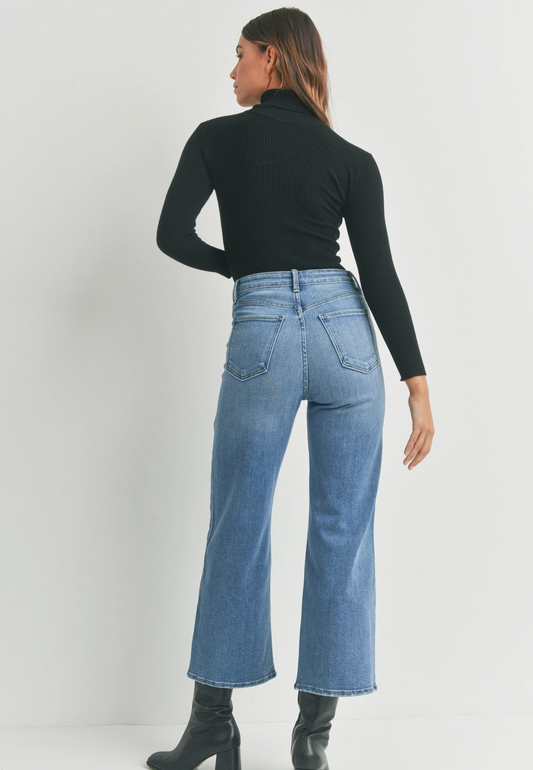 High Rise Cargo Pocket Jean- Medium Wash