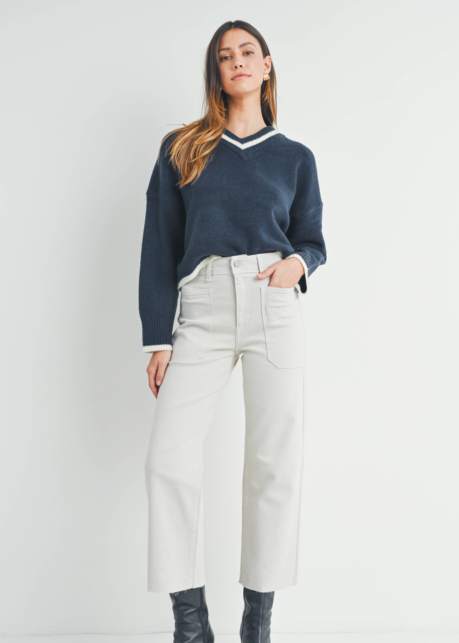 An all-time favorite! High waist jeans with cargo pocket and straight leg.