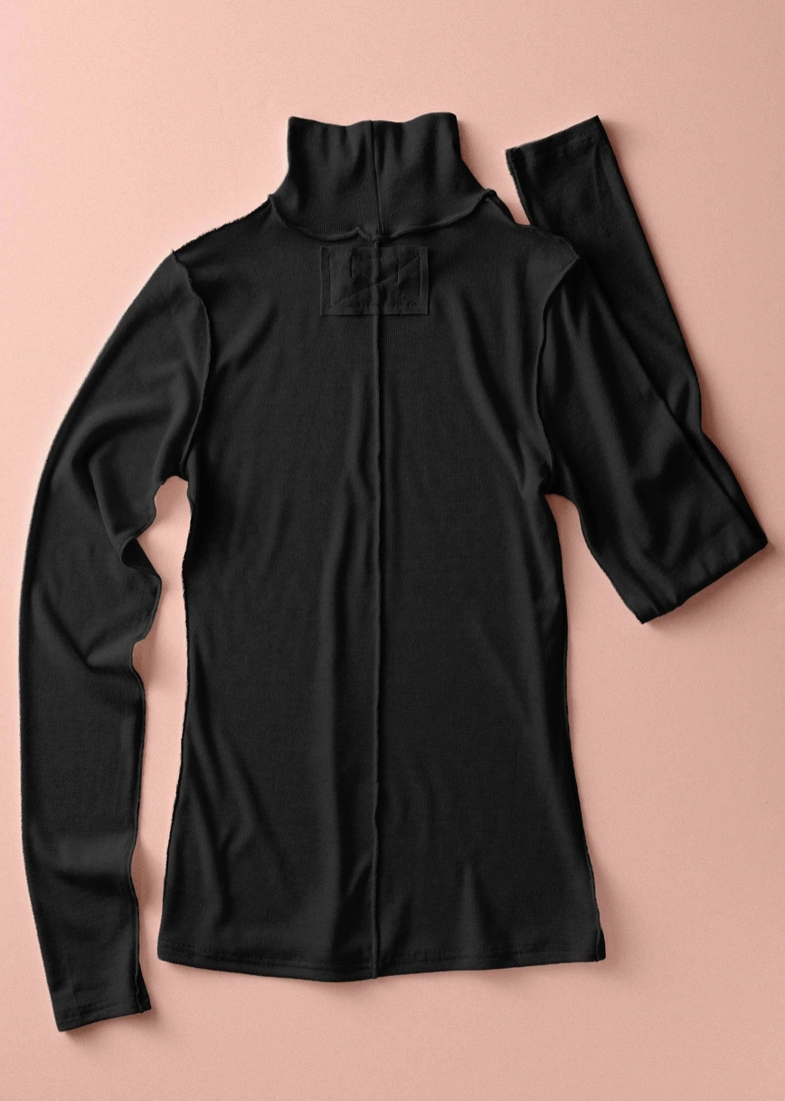 A wardrobe staple with a twist—this turtleneck blends a timeless silhouette with contrast seams for effortless layering.