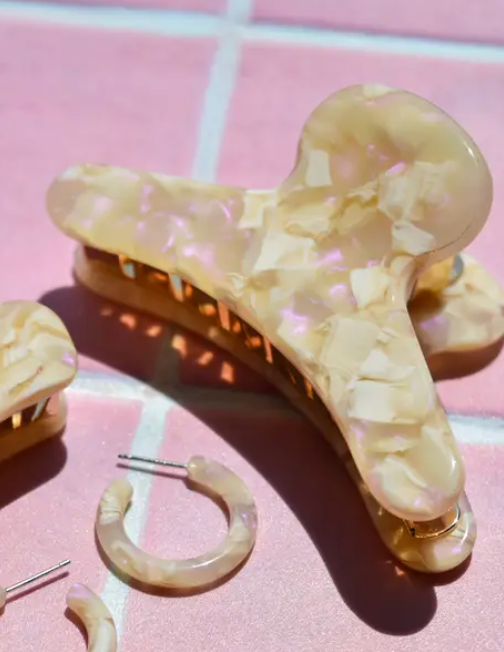 Committed to sustainable fashion, Fenna & Fei creates jewelry and hair accessories using a plant-based and biodegradable plastic called cellulose acetate. Cellulose acetate is made from cotton pulp and acetic acid. It is non-petroleum based and eco-friendly! Our acetate material is ethically sourced from Italy and Japan. All of our items are designed by me and crafted in China and Boise, Idaho.