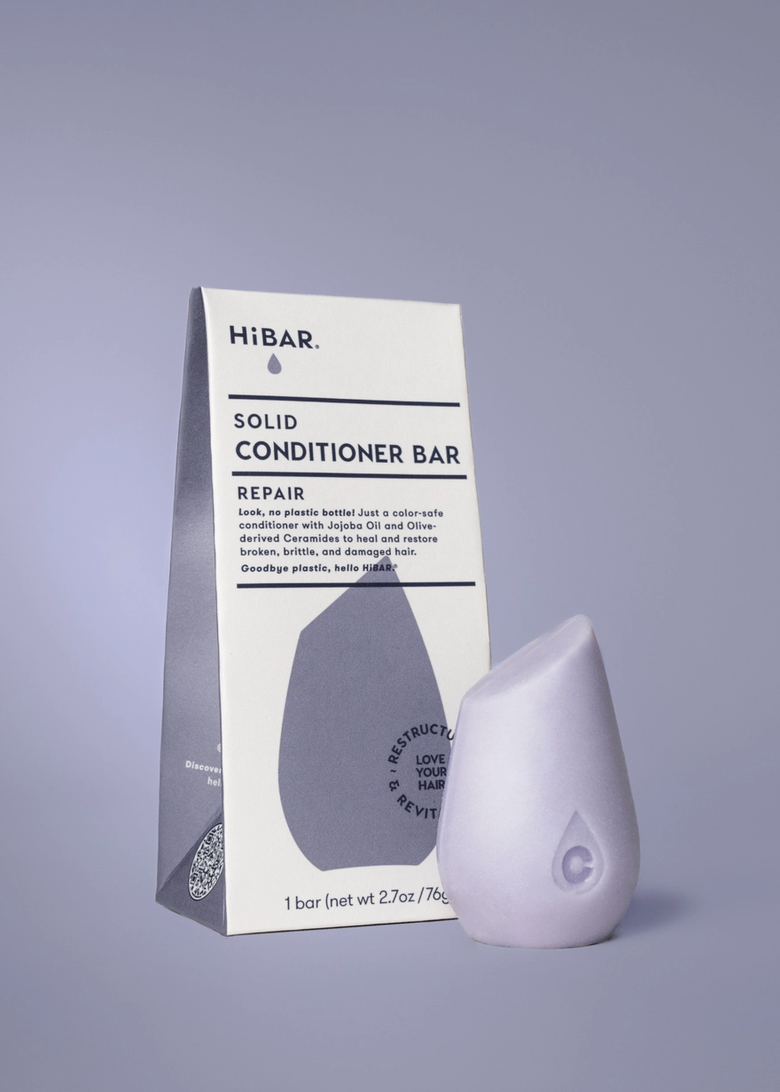Hello HiBAR Repair. Goodbye broken, brittle, damaged hair. Meet HiBAR’s soap-free Repair Conditioner Bar—a uniquely targeted solution for hair that’s been damaged by heat, chemical treatments or over-exposure to environmental stressors. Blended to naturally nourish, restore, and protect—it leaves your hair healthier, smoother and shinier than ever.