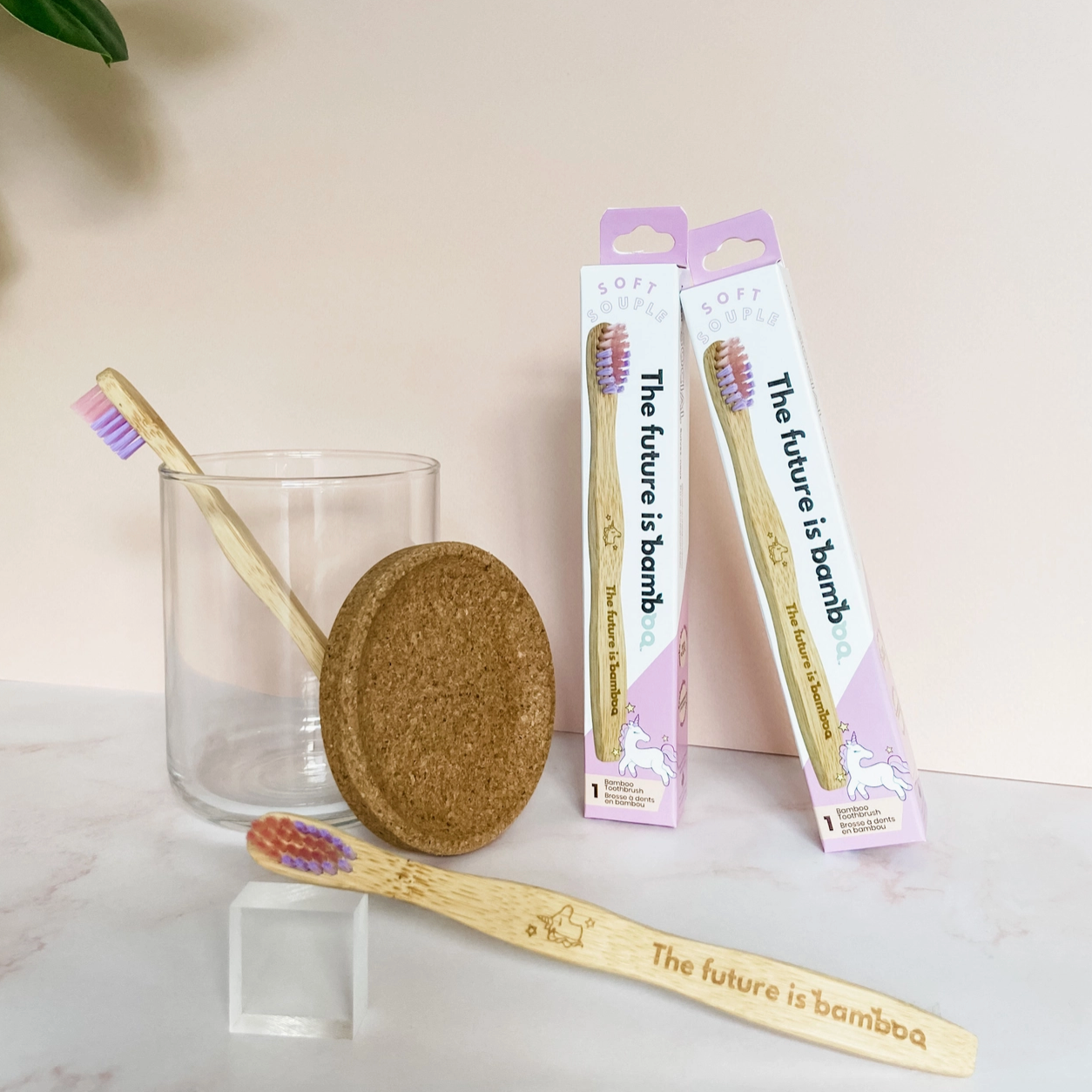 *100% biodegradable bamboo handle with soft BPA free bristles