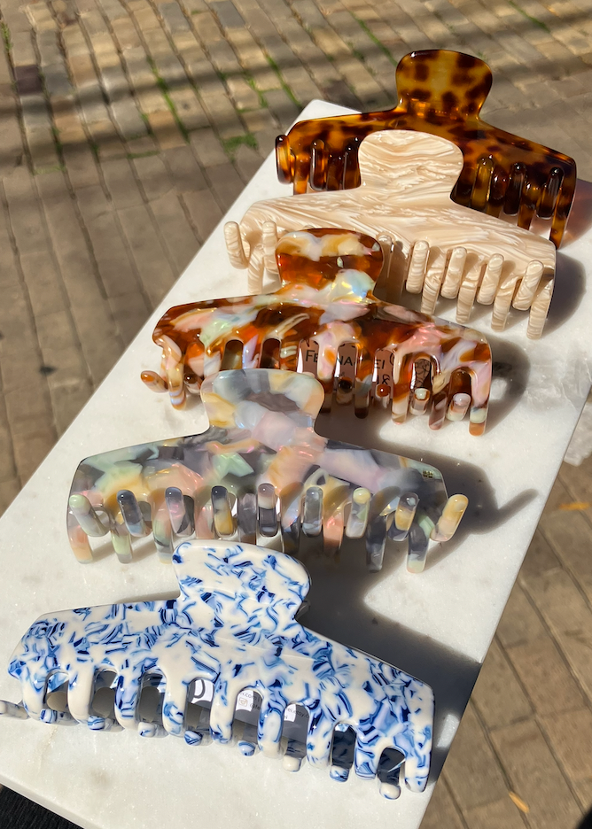 These Large all acetate claws will hold all of your hair up without holding you down. The perfect up-do accessory. Dress it up or down!