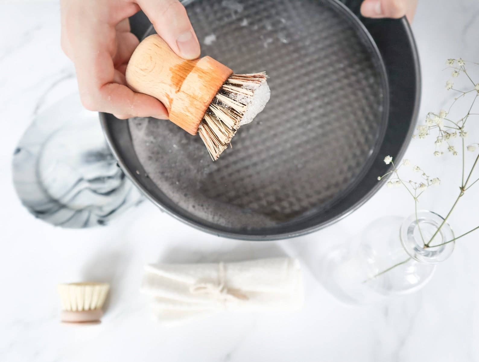 scrub pots, dishes, and other surfaces with dish soap as needed